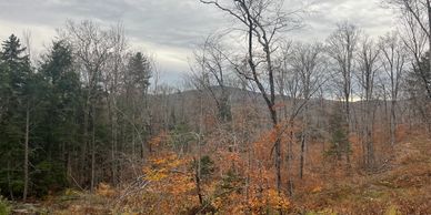 Behind the cabin, a loosely marked trail-made by our family several years ago-winds up the mountainside. It's a short, pleasant hike, especially in the fall or spring when the leaves are down and the views open wide. From near the top you can see fine vistas of the surrounding peaks and valleys. Unlike the better-known hikes of the White Mountains, this one has no crowds, no noise-just the sound of the wind in the trees and the quiet, peaceful sense of being part of the hills themselves.