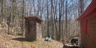 The cabin's original two-seater outhouse was mentioned in the original logbook - a simple, hand-built necessity perched in the woods. In the 1940's, it was rebuilt into the single-seat version that still stands today, crafted from local timber and set on the same slope behind the camp. A new roof and reinforcements were added in the 1990s, keeping it solid through New Hampshire winters. With no running water the outhouse remains a reminder of early mountain retreat life: practical, rustic, and still doing its job more than a century later.